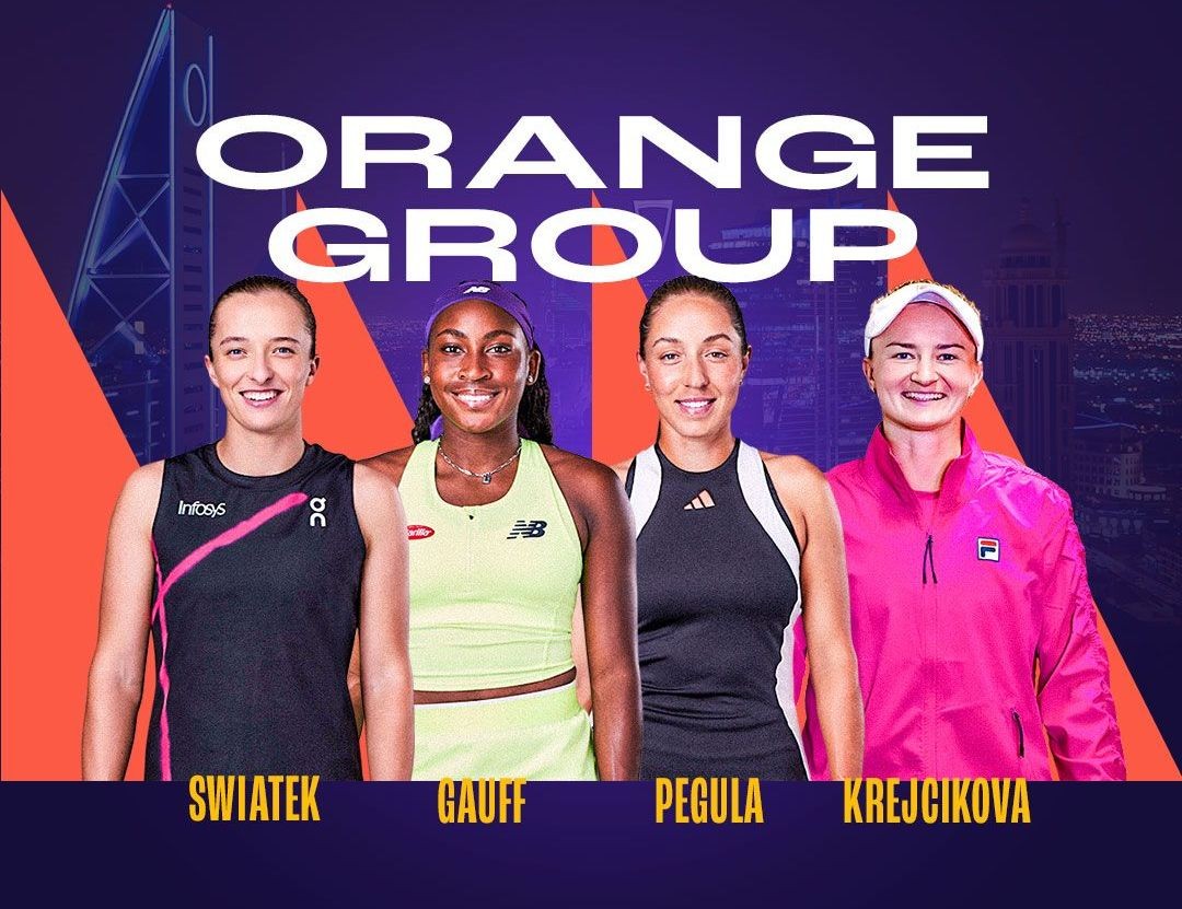 В Оранжевой группе за титул поборются вторая ракетка мира Ига Швёнтек, чемпионка US Open-2023 Кори Гауфф, финалистка US Open-2024 Джессика Пегула, а также действующая победительница Уимблдона Барбора Крейчикова.